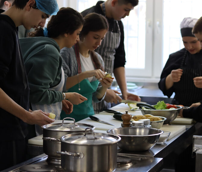 Today was the first day of the Cultural Cookout Winter Camp! Around 30 young participants from high schools with diverse ethnic backgrounds in Mitrovica took part in various camp activities such as: Icebreaker “My name on the plate”, Secret Friend, bingo, and Egg Drop Challenge. The goal of this camp is to bring communities together through food, cooking, and sharing traditions, while learning about healthy eating and culinary preparations. It was exciting and full of energy! This activity is funded by Kitchen Without Borders and implemented by Community Building Mitrovica.