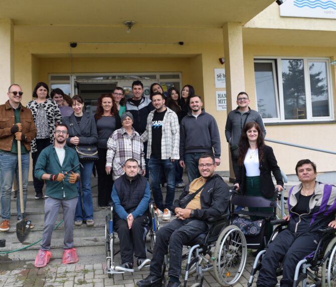 idea to help revitalize Se Bashku’s outdoor space. Together, they planted flowers and added a symbolic tree representing strength and resilience. Following the activity, a shared lunch provided an informal setting for participants from both organizations and their beneficiaries to connect, exchange experiences, and strengthen both inter-organizational collaboration and interpersonal relationships, further reinforcing the spirit of unity and community trust the project aims to build.
